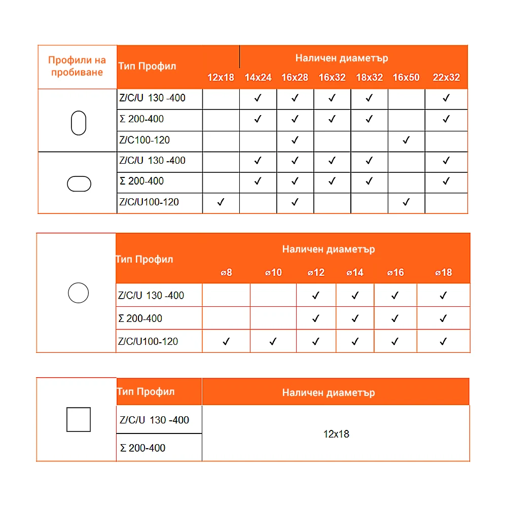Поцинкованите профили могат да бъдат перфорирани съгласно плана за пробиване, изготвен от проектанта.